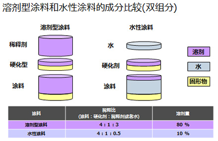 由于作为室内空气污染元凶的VOC含量较少,与溶剂型涂料相比水性涂料的臭味及有害性也相对较低。因此,水性涂料可以说是兼顾到了喷涂作业者的健康以及环境层面的友好型涂料。
