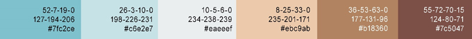 色彩分析:明度较高的棕色系是小麦的颜色,棕色与蓝色搭配往往给人平静、舒适的感受。