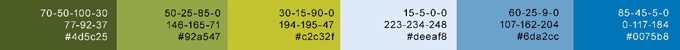 色彩分析:采邻近色搭配,纯度较高的蓝绿色系使整体色调明快,展现除了夏季的明媚、爽朗。